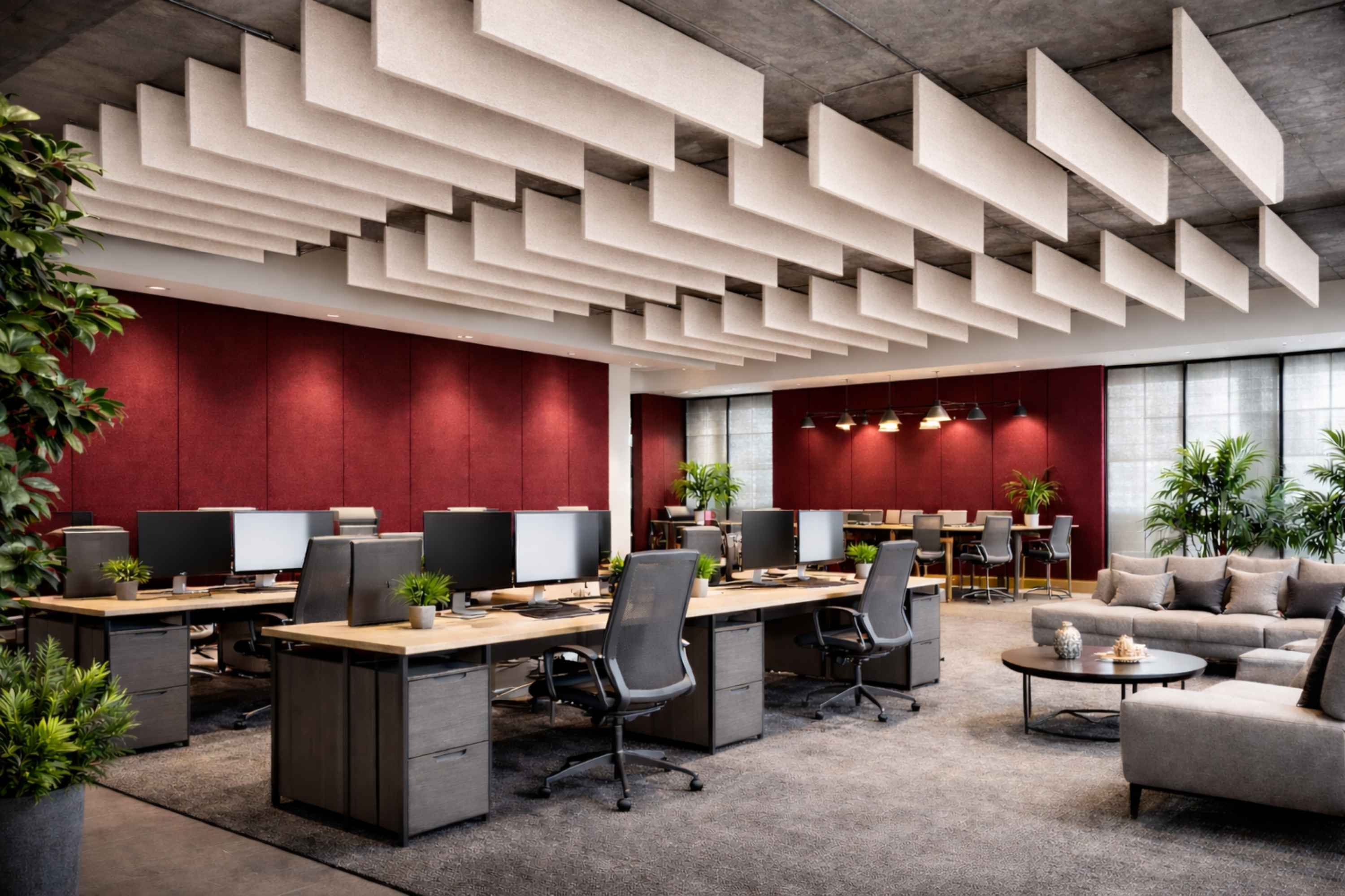 Acoustic panels control reflections so open offices feel calmer.