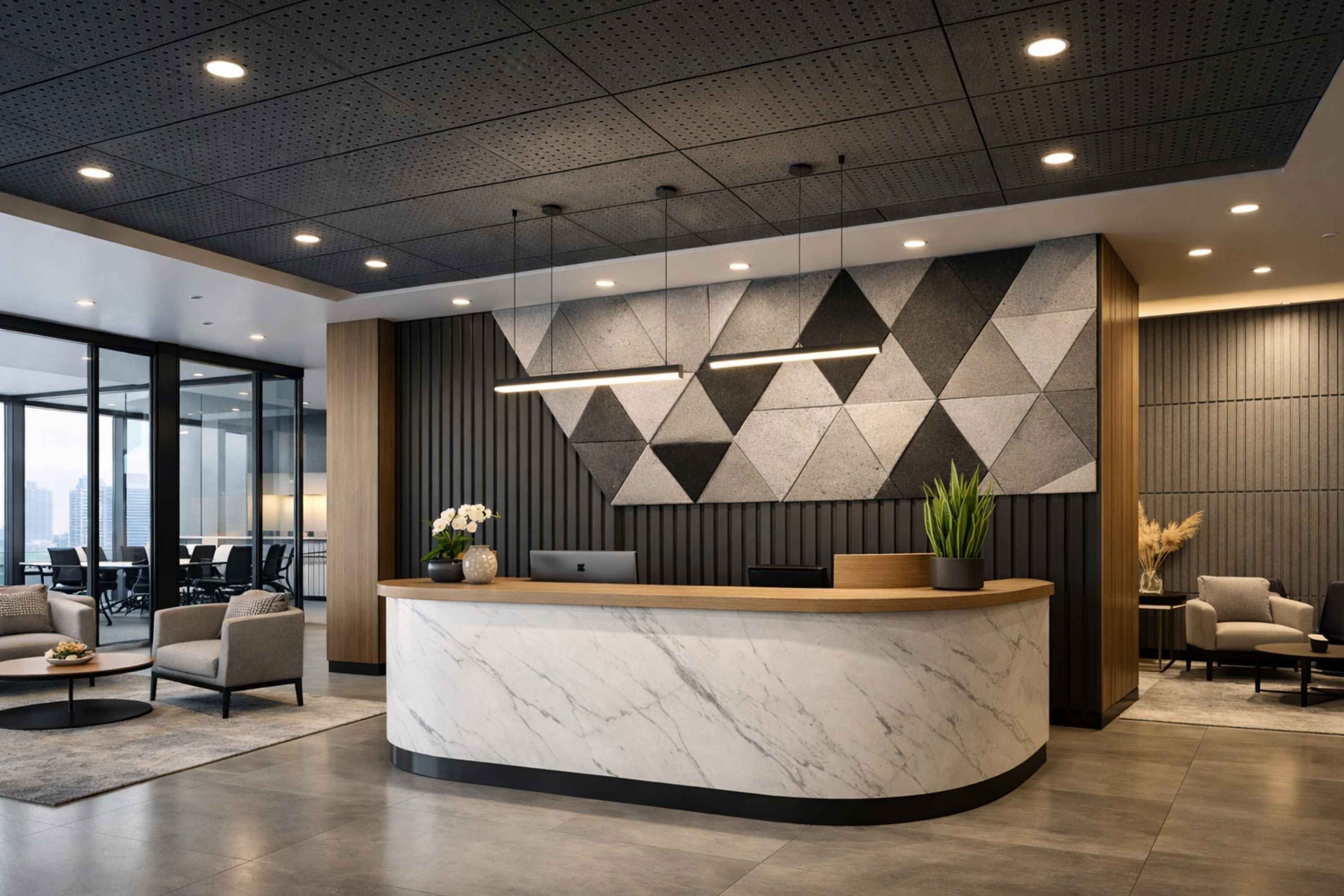 Why It Matters: The first impression is sound. Excess noise makes the office feel stressful, even if the design is premium.