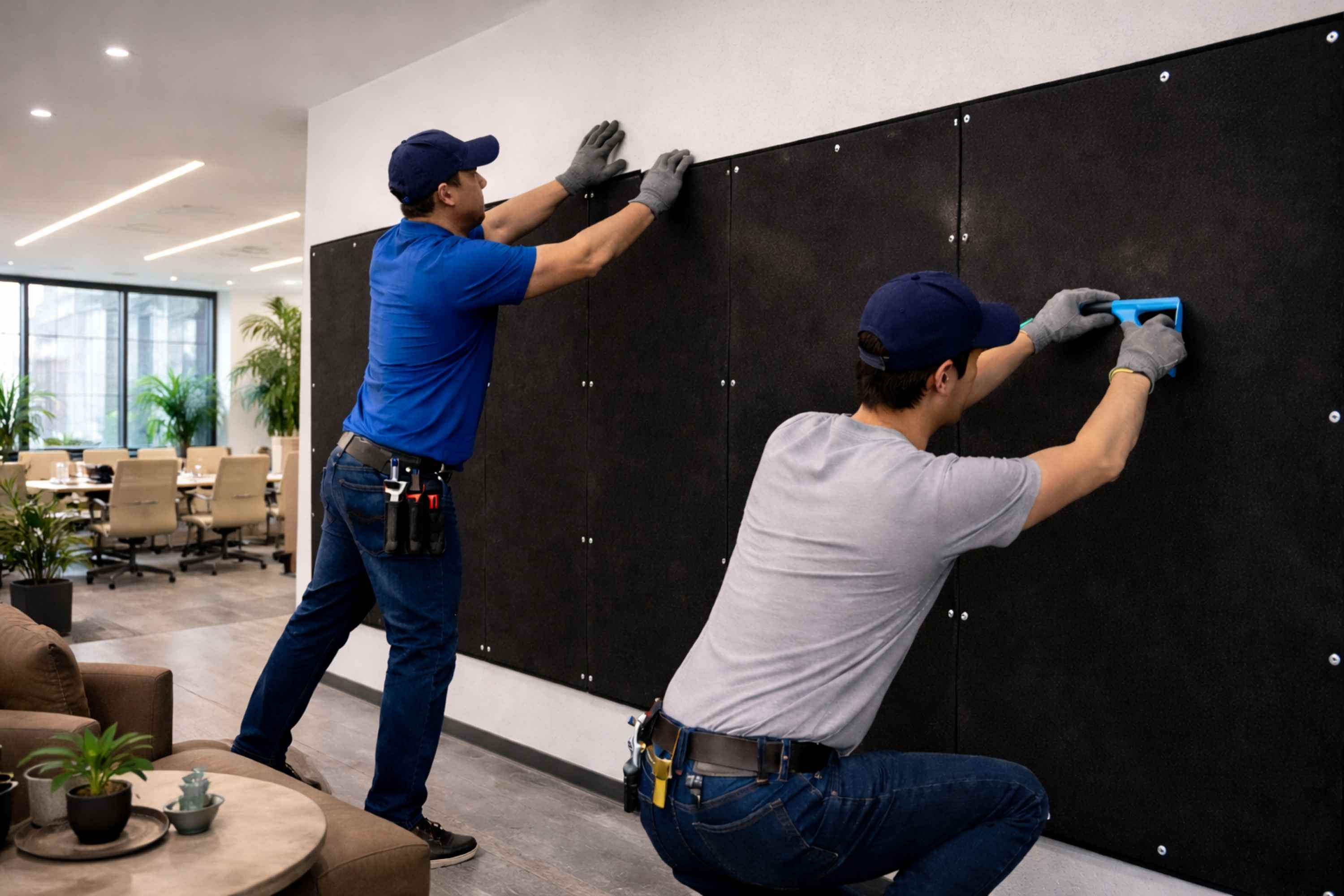 Noise control that feels premiumWe engineer office acoustics for daily use: open work zones, cabins, boardrooms, training rooms, reception and HVAC noise control.